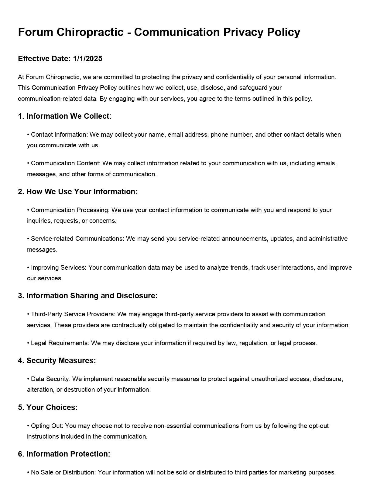 At Forum Chiropractic, your privacy is important to us. The following explains our privacy policy and our approach to the collection and use of information about you and/or your company.